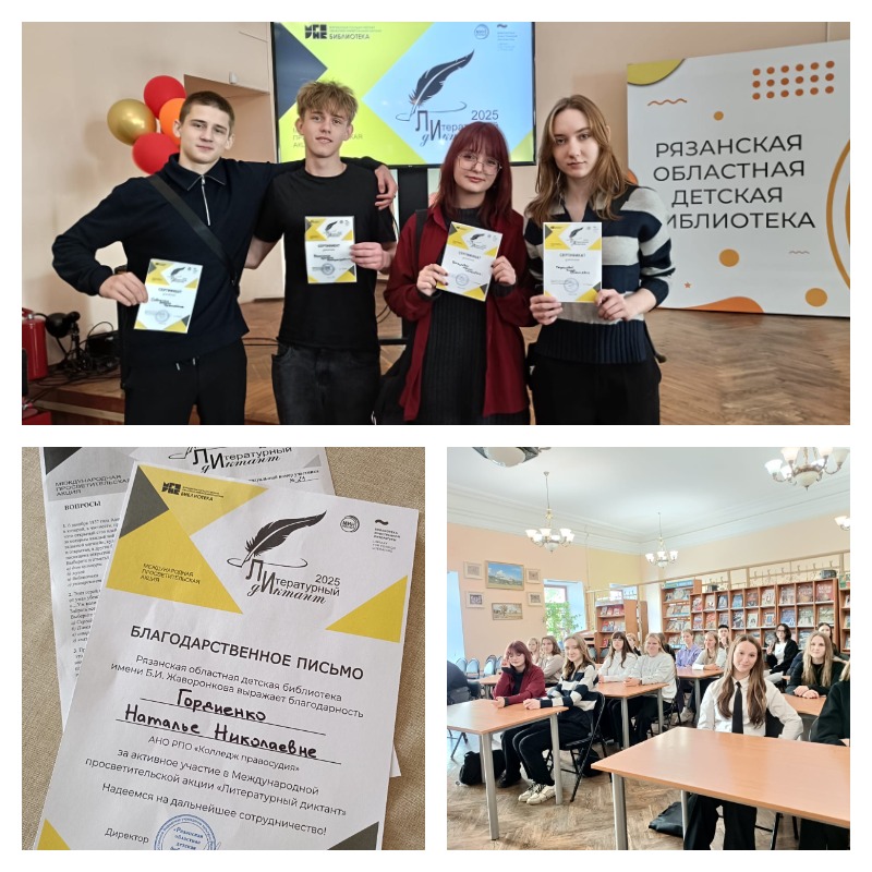 📜В Рязани площадкой для диктанта стала Областная детская библиотека имени Б.И. Жаворонкова. Обучающиеся Колледжа Правосудия успешно справились с 20 интересными и сложными заданиями и получили заслуженные сертификаты участников.