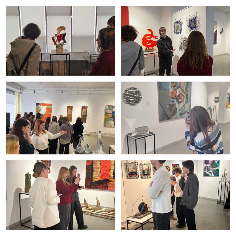 🖼️ На выставке представлены работы 17 московских и петербургских авторов — художников по стеклу, живописцев и керамистов. Студенты увидели, как мастера сочетают стекло с глиной, деревом и металлом, создавая уникальные произведения.