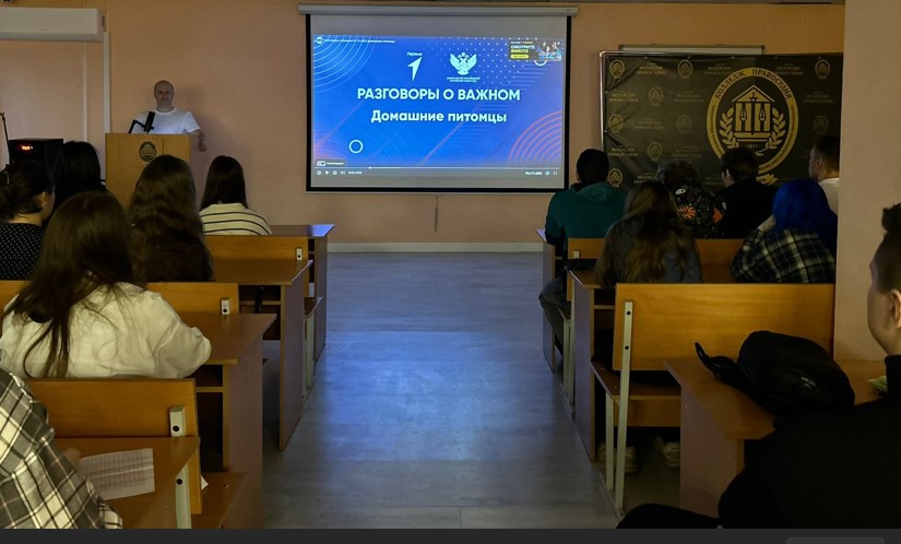 01 декабря 2025 года в АНО ПО «Колледж правосудия» прошло очередное внеурочное занятие в рамках цикла «Разговоры о важном», посвященное теме «Домашние питомцы». Студенты познакомились с Федеральным законом «Об ответственном обращении с животными», узнали, какие вопросы регулирует государство с его помощью: отношения в области обращения с животными в целях их защиты, укрепления нравственности, соблюдения принципов гуманности, обеспечения безопасности и иных прав и законных интересов граждан. Обсуждали, почему отношение к животным — это маркер уровня развития общества. На практическом задании команды разрабатывали правила поведения в сложных ситуациях, связанных с питомцами и бездомными животными. Говорили о питомцах известных исторических личностей и о подвигах животных в Великой Отечественной войне.