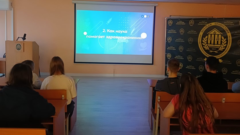 02 апреля 2026 года в АНО ПО «Колледж правосудия» в рамках цикла «Россия – мои горизонты» проведено профориентационное занятие по теме «Россия здоровая: Медицина и фармацевтика». Обучающиеся получили представление о профессиях, которые заботятся о нашем здоровье, борются с болезнями, спасают жизни и увеличивают ее продолжительность: врачи, медсестры, фельдшеры, лаборанты и фармацевты. Студенты узнали, как работают врачи, с какими трудностями им приходится сталкиваться, спасая человеческие жизни, а также, чтобы вылечить, сохранить и поддержать здоровье людей. Какое влияние оказывает труд врачей, ученых и фармацевтов на продолжительность и качество жизни человека, а также значимость труда людей данных профессий во время эпидемий и пандемий.